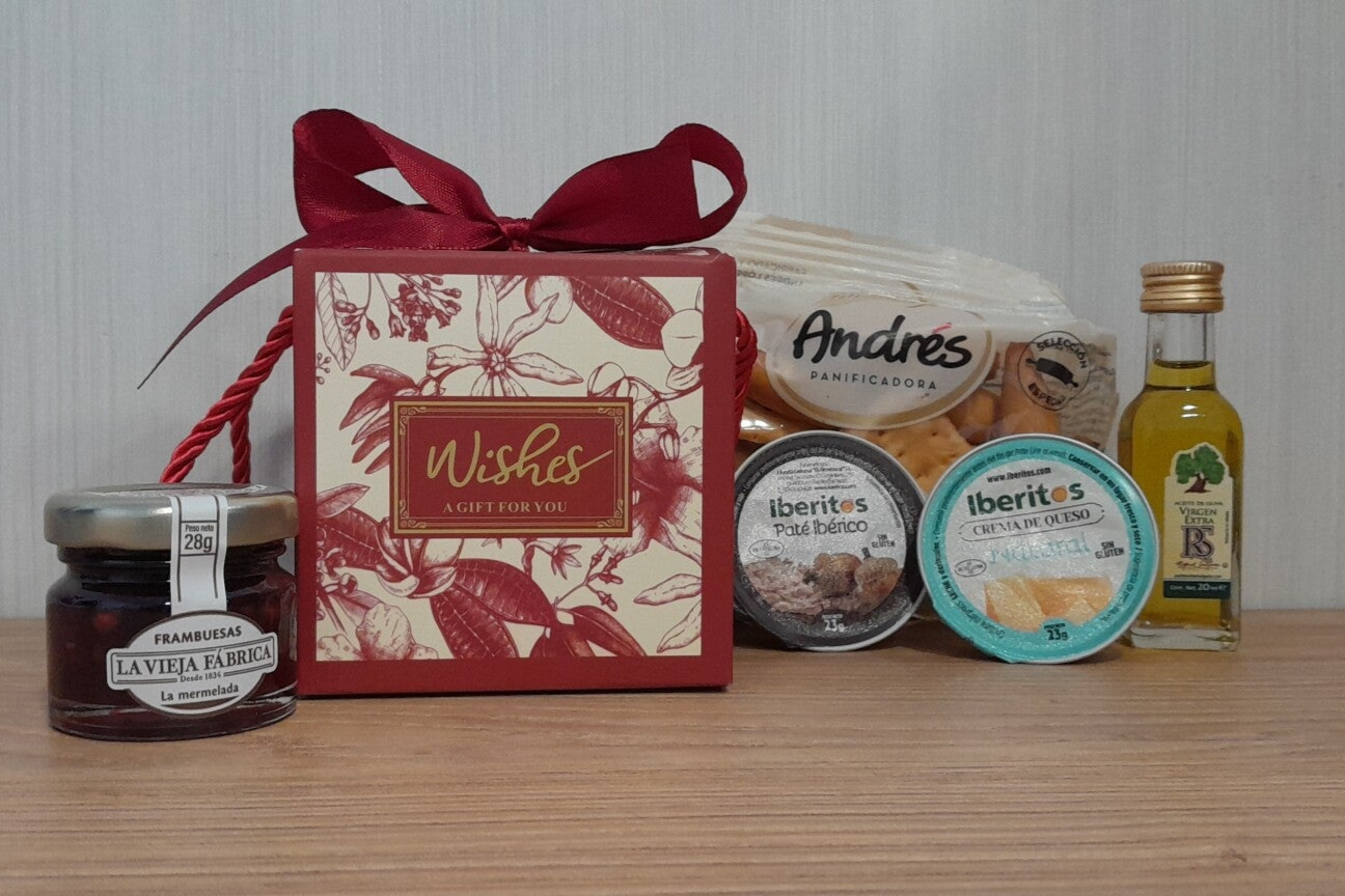 Este kit combina la frescura de la mermelada de frambuesa La Vieja Fábrica con la cremosidad de la torta ibérica y la crema de queso.